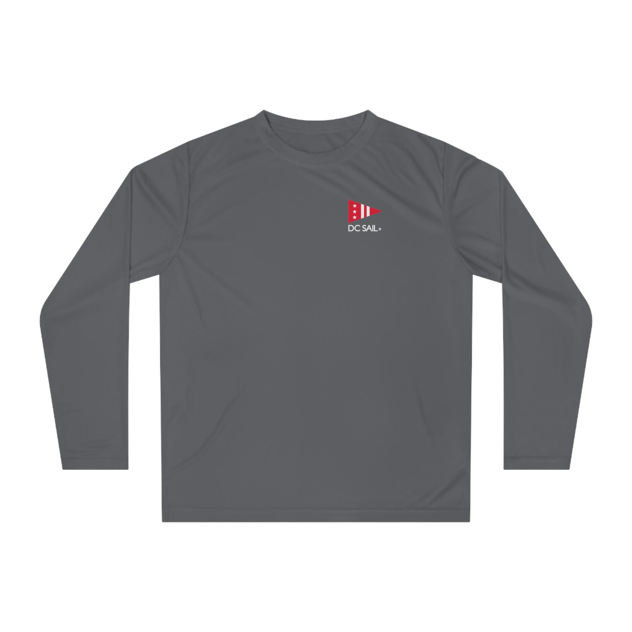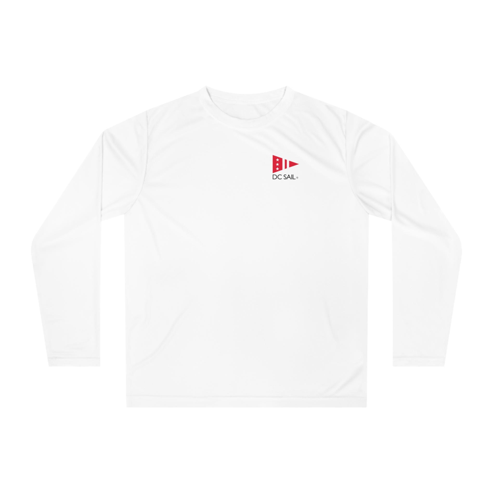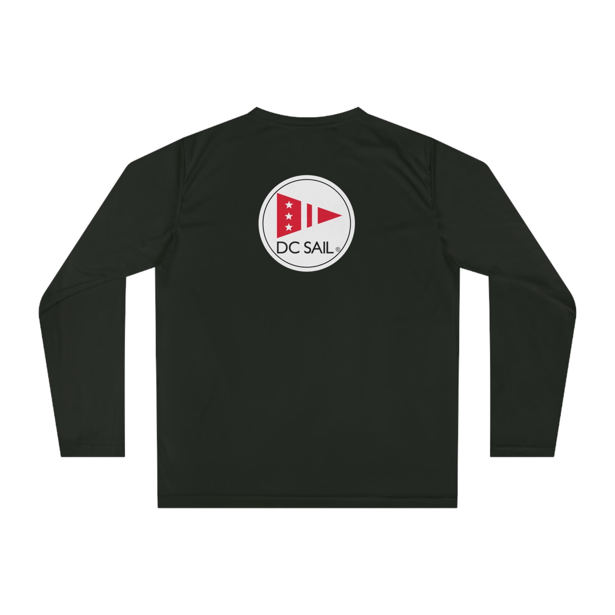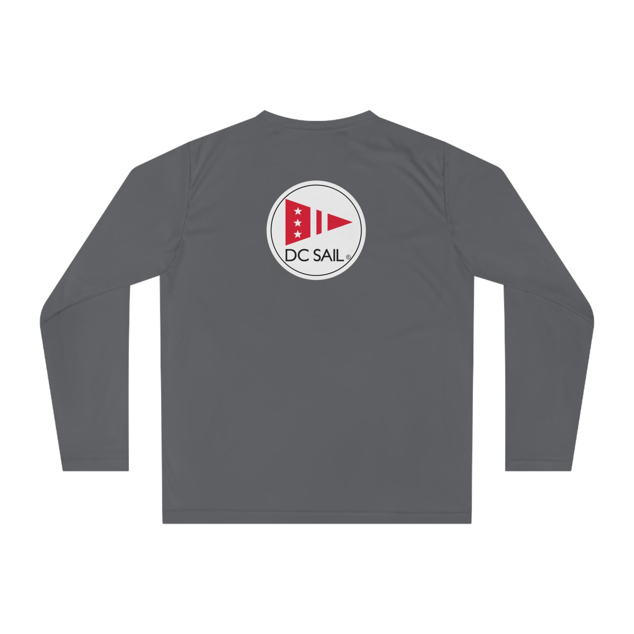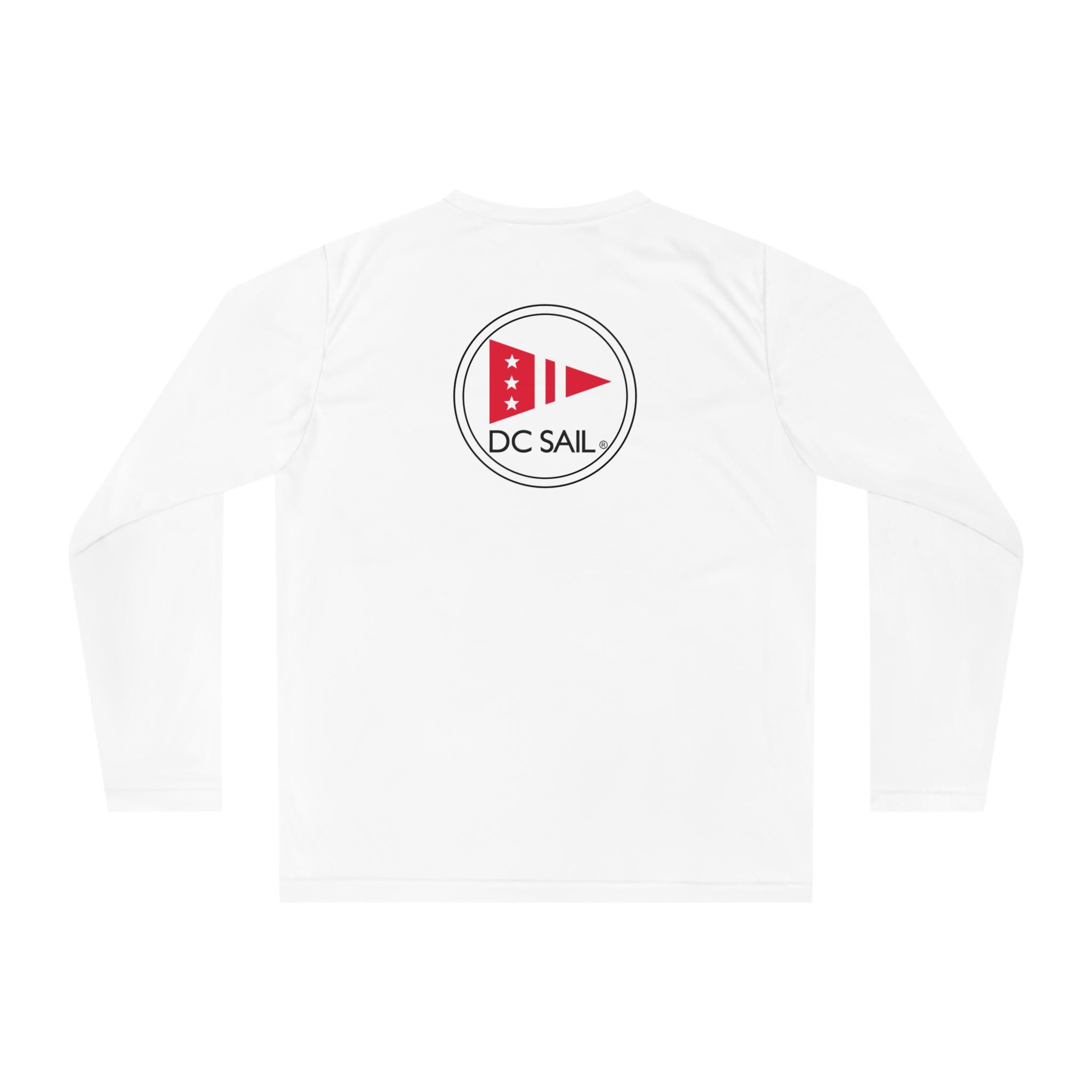 DC Sail tech shirt with circle logo on the back! Created for action, this custom sports shirt is made with 100% polyester interlock that keeps you dry and comfy when peak performance is the only way. This lightweight, long-sleeve shirt offers 40+ UV protection and features cationic dyes for unparalleled brightness and color fastness.
